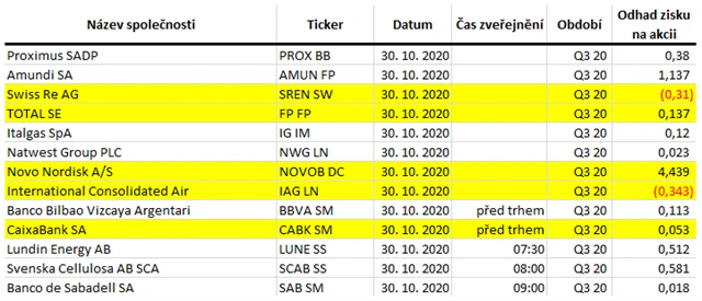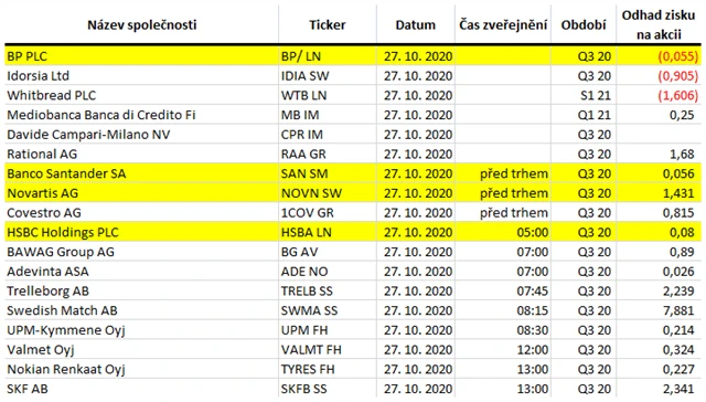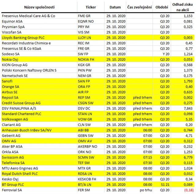 Jaká překvapení přinesly oznámené výsledky evropských firem za 3Q2020?