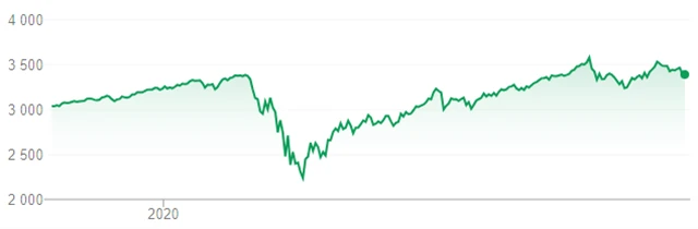 S&P 500 (27. 10. 2020), zdroj: Google Finance
