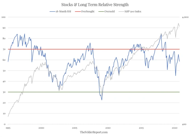 Přijmeme-li premisu, že ocenění je dáno kombinací těchto tří faktorů, dostaneme obrázek silně překoupeného trhu taženého stále výše euforií spekulantů. "To, co vidíme, je ukázkovým příkladem pozdní fáze cyklu, který naznačuje, že by investoři ve vztahu k rizikovým aktivům měli být přinejmenším opatrní," varuje Jesse Felder.