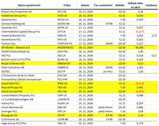 Poznámka: Odhady analytiků jsou aktuální k 12. 11. 2020.