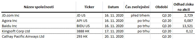 Očekávané výsledky světových firem v týdnu od 16. listopadu