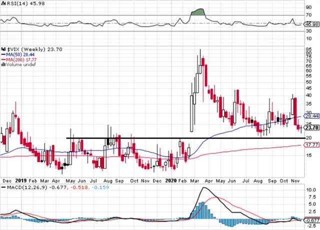 Index volatility VIX uzavřel týden o něco výše než před týdnem a drží se nad 20. Nadále je ale u letošních minim a pro akcie vysílá spíše optimistický signál.