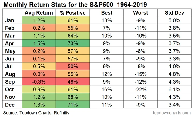 - S&P 500 od roku 1950 v průměru co měsíc přidává zhruba 0,7 %.