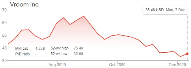 Společnost se zabývá on-line prodejem ojetých aut a příslušenství a postupně rozšířila byznys také o pojištění, pronájmy aut a půjčky. Na trh uvedla své akcie teprve letos v červnu. Po letním růstu titul začal výrazně oslabovat, když sílu čerpanou z obecného příklonu spotřebitelů k on-line prostředí a také z nižších cen ojetých vozů časem převážil obecnější propad poptávky. Na současných úrovních a ve světle očekávaného restartu hospodářství jde podle JPMorgan o atraktivní nákupní příležitost.