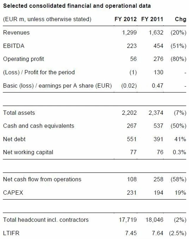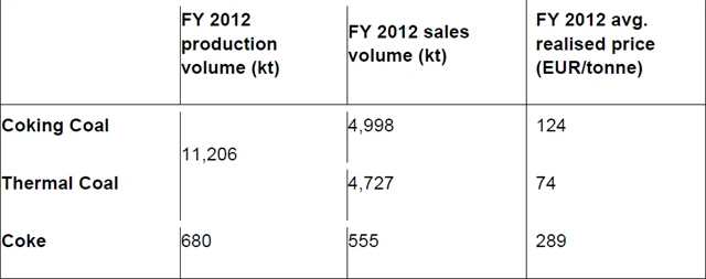 Provozní zisk EBITDA se za celý rok 2012 meziročně snížil zhruba na polovinu (223 milionů eur), těžba uhlí zůstala takřka beze změny na 11,2 milionu tun. "Rok 2012 byl pro NWR těžký. Pokračující makroekonomické nejistoty v Evropě i zpomalení ekonomiky v Asii ovlivnily podnikatelský sentiment, což dopadlo i na trhy s ocelí a souvisejícími surovinami, včetně koksovatelného uhlí," uvedl předseda představenstva NWR Gareth Penny.