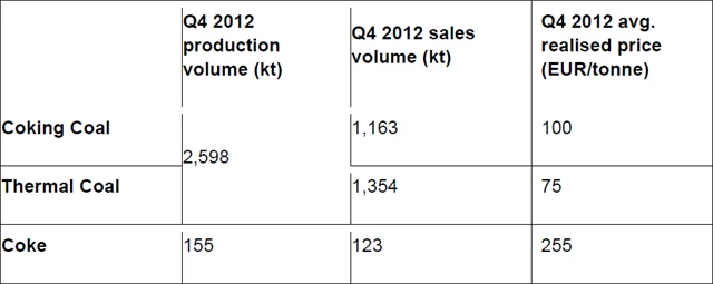Uhelná společnost NWR ve 4. čtvrtletí 2012 hospodařila s čistou ztrátou 48,61 milionu eur, což bylo vysoko nad průměrem očekávání analytiků 35,5 milionu eur. Tržby zůstaly rovněž za očekáváním (286,6 milionu eur vs. odhad 293,6 milionu eur.