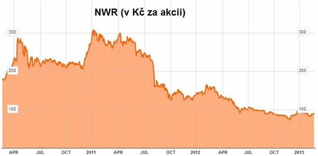 Cena akcií NWR za poslední tři roky. Pro investory nijak příjemný pohled.