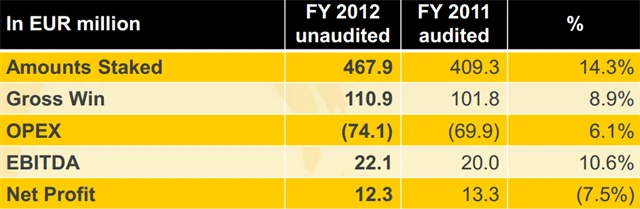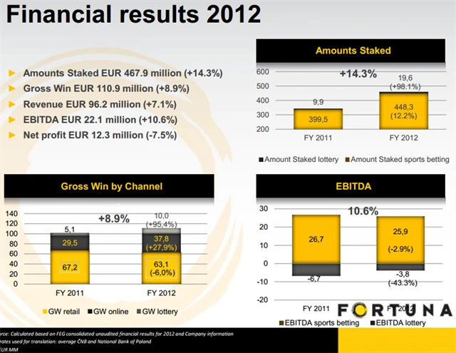Fortuna zveřejnila dobré výsledky za rok 2012, letos očekává další růst