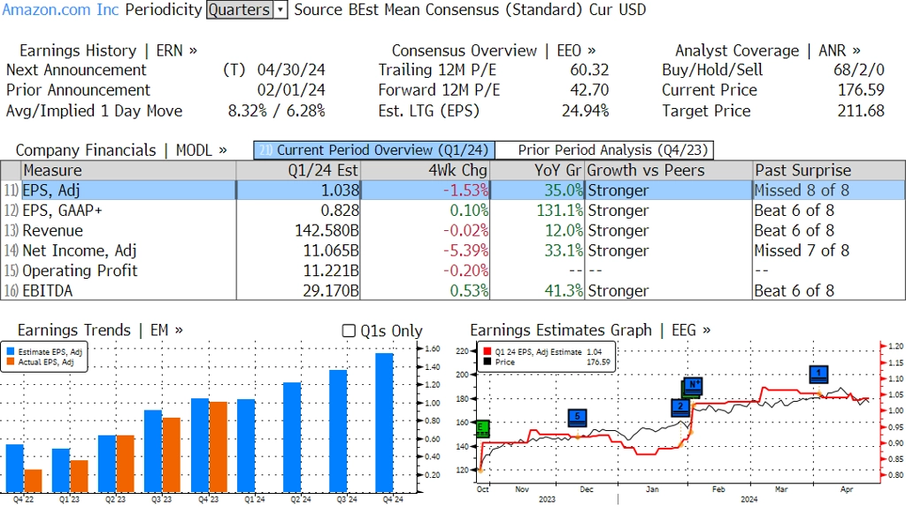 Jak se mění odhady vývoje zisků a tržeb amerických firem za 1Q2024?
