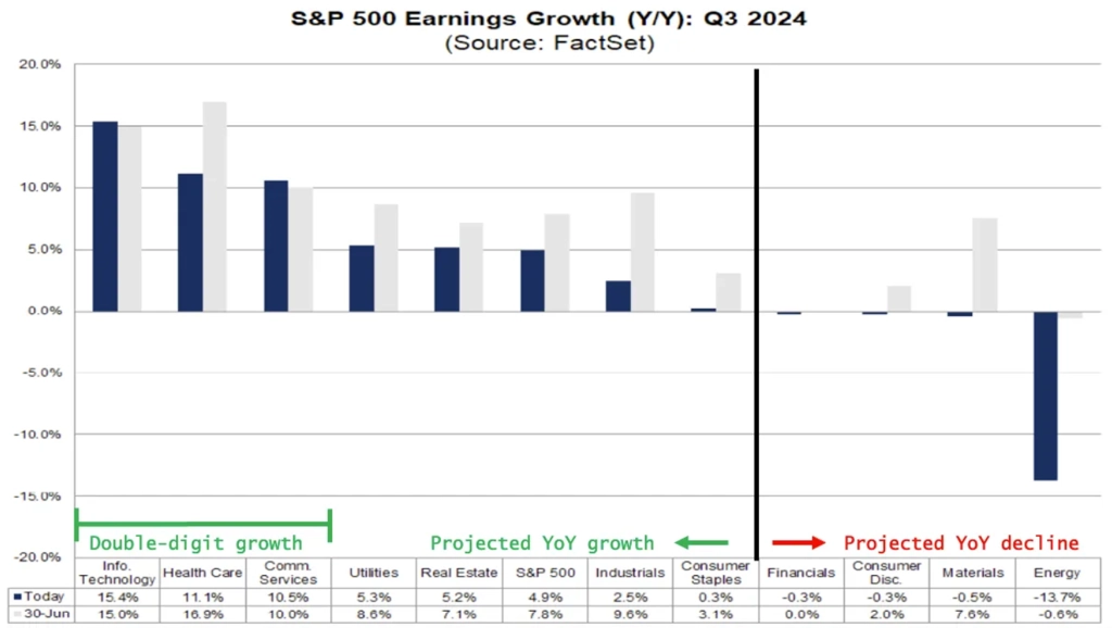 Co může ocenění akcií v USA pomoci, jsou solidní hospodářské výsledky firem. S růstem zisků roste i jmenovatel hojně užívaného valuačního poměru P/E, a tedy při teoreticky stejné ceně akcií klesá ocenění. Analytici pro firmy z indexu S&P 500 vyhlížejí za třetí kvartál další meziroční růst zisků. Z 11 hlavních sektorů jich na tom v tomto směru má být lépe hned 7, a to v čele s technologiemi, zdravotní péčí a komunikačními službami.