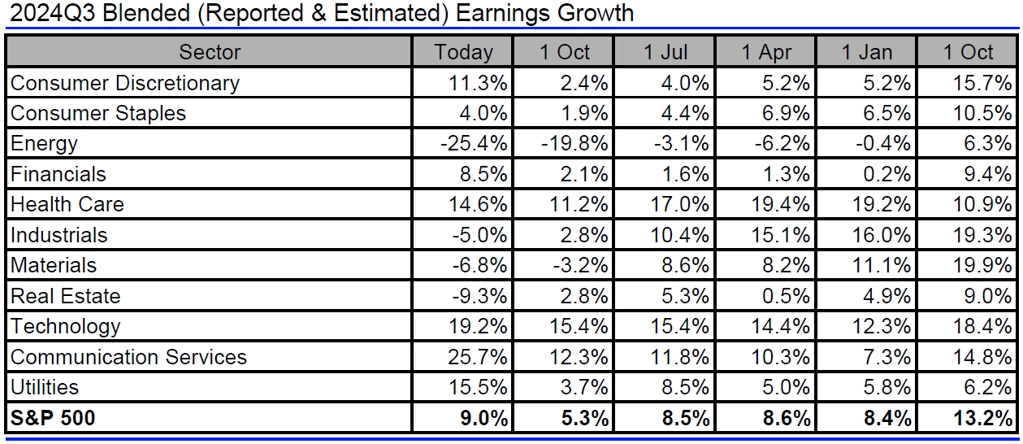Jak se mění odhady vývoje zisků a tržeb amerických firem za 3Q2024?