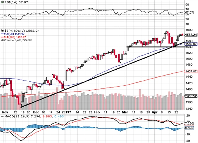Závěr: Graf indexu S&P 500 zůstává v býčím nastavení. Silný support je na hladině 1 540, případná nižší závěrečná cena bude teprve signálem převahy medvědů.