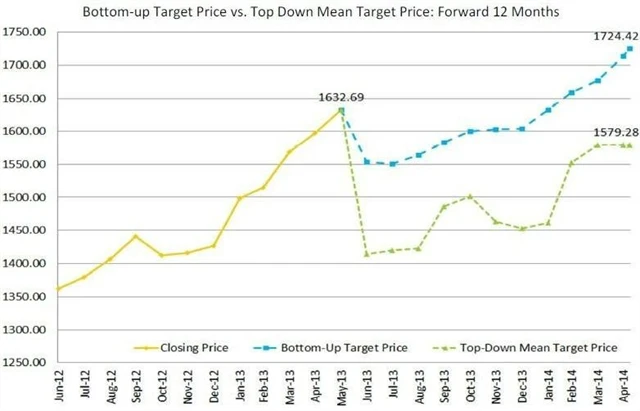 Americké akcie v minulém týdnu posouvaly svá historická maxima. Najít cílovou cenu indexu S&P 500 není tak úplně hračka - analytici na základě cílových cen (bootom-up) pro jednotlivé akcie odvozují hodnotu indexu na zhruba 1 579 bodů, stratégové z celkového obrázku (top-down) vyvozují cílovou cenu vysoko nad 1 700.