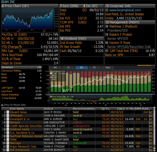 Beam je mnohem menší společností a spekulativnější sázkou než dvě předchozí, ale to neznamená, že by neměl investorům co nabídnout. Kromě silné pilotní značky Jim Beam má i velký potenciál. Vlastní značky Courvoisier (koňak), Sauza (tequila) nebo Maker's Mark (whisky). Není jen zavedenou značkou v USA, zažívá velký boom i v zahraničí, zejména v Indii, kde se roční růst v posledních pěti letech pohyboval okolo 25 %.