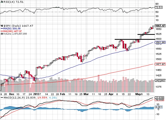 Nejbližší support u indexu S&P 500 je v zóně 1 620 až 1 625, další na psychologické hladině 1 600. Novou rezistenci si index ještě nestanovil, pullback se zatím nekoná, k dalšímu kulatému číslu 1 700 zbývají necelá 2 %.