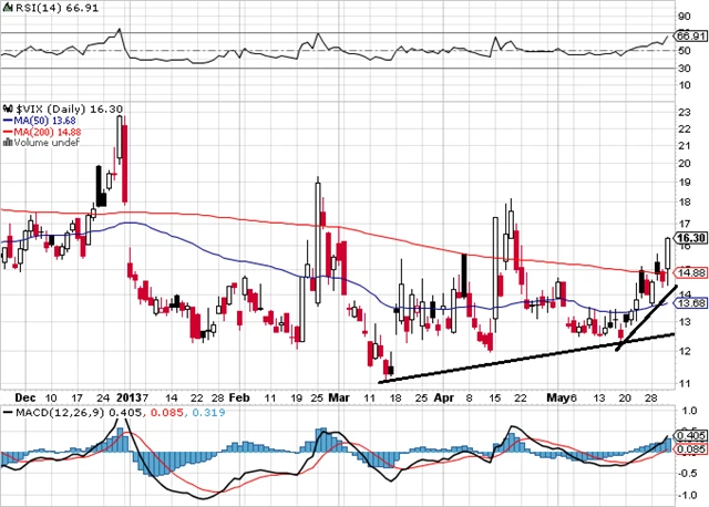 Index volatility VIX byl jedním z mála indikátorů, které dlouhodobě podporovaly akciový růst. Nicméně minulý týden potvrdil vlastní růstový trend, v pátek se v poslední hodině obchodování vrátil nad hladinu 15 a uzavřel na hodnotě 16,30.