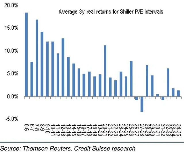 "Cítíme, že jsou investoři kvůli vysokým hodnotám P/E stále obezřetnější," píše ve své poznámce klientům analytik Andrew Garthwaite z Credit Suisse. "Současné ocenění ale nevylučuje další růst cen akcií. Index S&P 500 je nejzranitelnější při hodnotách nad 26 u Shillerova P/E, u 24 naopak v průměru během dalších tří let nabídne investorům další zajímavé zhodnocení."