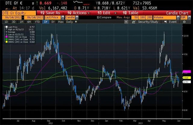 Deutsche Bank 31. května zvýšila cílovou cenu akcií Deutsche Telekom na 11,1 eura z 10 eur.