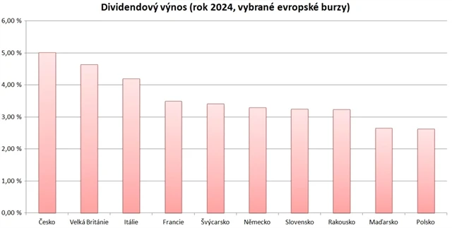 | Společnost | Dividenda na akcii | Poznámka | Cena akcií (k 29. 5. 2025) | Hrubý výnos (dle akt. ceny) |
