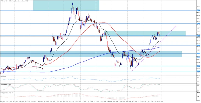 Část investorů doufá, že návrat k plnému úvazku Muska v čele Tesly pomůže akciím automobilky v návratu na historická maxima. "V současnosti ale titul konsoliduje okolo psychologicky zajímavé hranice 350 USD a čeká se na katalyzátory nového býčího trendu. Ukazatele momenta naopak potvrzují oslabení současného trendu. MACD se obchoduje nad nulou, ale pohybuje se pod (červenou) signální linií, RSI klesá na neutrální úrovni kolem 50 a stochastický ukazatel předvedl medvědí překřížení v překoupené oblasti," říká Line Bin, externí analytik InstaForex.eu.