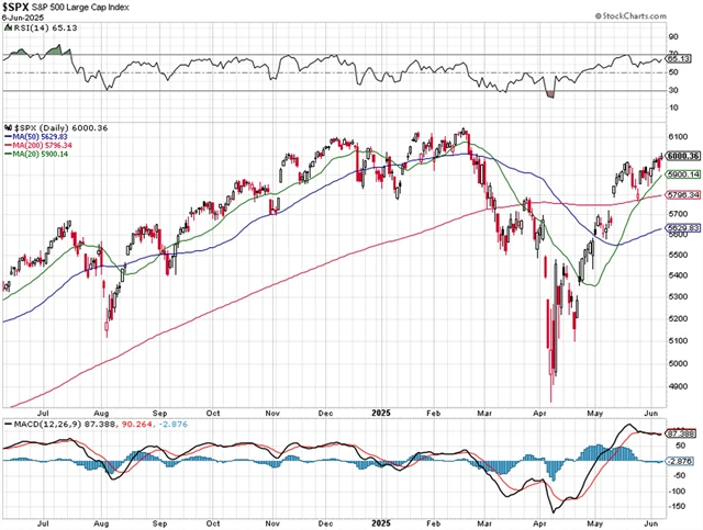 Týden na trzích podle burzovních grafů: Růst indexu S&P 500 pokračuje, býci vyhnali kurz na(d) 6 000 bodů