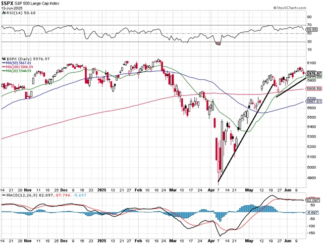 Index S&P 500 se vyšplhal na dohled historickému maximu a jeho testování bylo prakticky na spadnutí. Roznícení bojů mezi Izraelem a Íránem změnilo situaci a index klesl zpět pod 6 000. Stejně rychle, jako zamířil níže, ale může nastat obrat výše, obchodníci byli naladěni na další růst navzdory řadě rizik, jež na trh působí. Geopolitika se vrátila na jejich radary, chuť otestovat rekordní úrovně ale nemusela tak rychle vyprchat.
