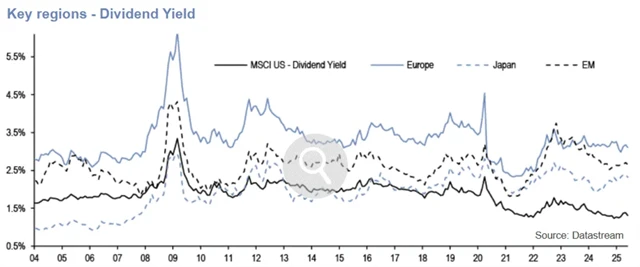 Globální akciový zvrat: Ocenění i dividendy jsou ve světě atraktivnější než v USA, i ve zpětných odkupech Amerika ztrácí náskok