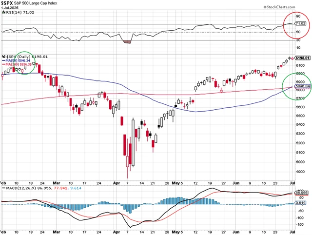 V případě zlatého kříže indexu S&P 500, který nastal 1. července 2025, se ale najdou důvody, proč ho nevnímat až tak optimisticky. Důvodem je právě rychlost, s jakou trh z minima vystřelil na nové rekordní úrovně.