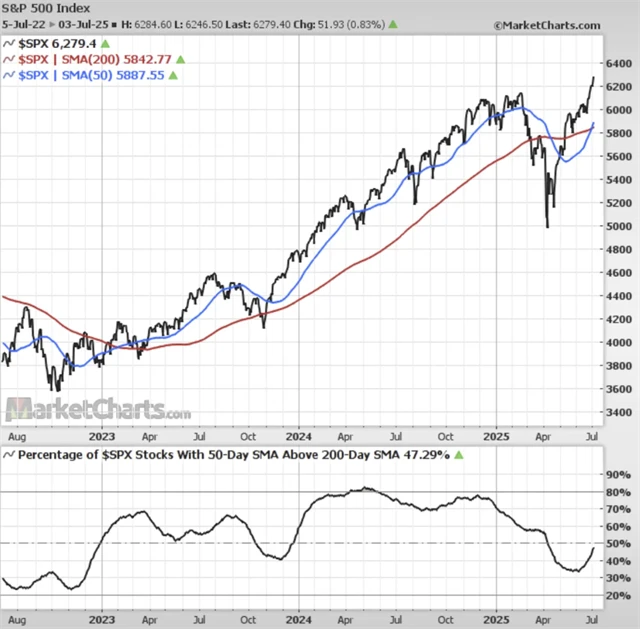 A na úrovni jednotlivých akcií je podíl těch, které samy jsou ve fázi "po zlatém kříži", na vzestupu, ale stále pod 50 %. Z technického hlediska je tedy prostor pro zlepšování stále velký. Uvidíme, zda a v jaké míře do všech těch příznivých technických statistik "hodí vidle" politické nebo fundamentální ekonomické faktory.