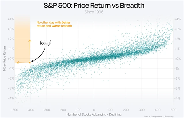 Část obchodníků může celkem logicky v současné nejisté době chtít zrealizovat zisky. Bezmála 450 titulů v červených číslech během úterý je toho důkazem, pouze solidní výkon několik z největších firem zabránil hlubšímu poklesu. Mimochodem, při tak malém počtu posilujících titulů v indexu (53) nebyl nikdy denní pokles indexu S&P 500 tak mírný (0,40 %).