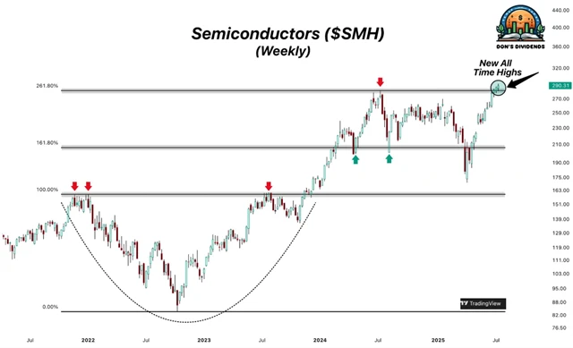 Mezi hvězdami uplynulého týdne se nepochybně řadily akcie Nvidie, která poprvé v historii překonala hranici 4 bilionů USD tržní kapitalizace. To výrazně pomohlo na nový rekord celému odvětví polovodičů. To díky svému spojení s tématem umělé inteligence zůstává jedním z největších burzovních příběhů současnosti.