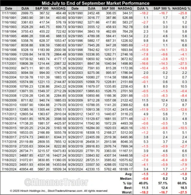 Pro nejbližší týdny a měsíce pak americký trh jako celek také může čelit nepříznivé sezónnosti. Období od poloviny července do konce září je totiž pro hlavní indexy historicky nejslabší v rámci kalendářního roku.