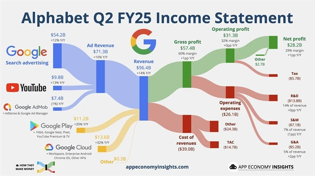 Příspěvek cloudu do hospodaření Alphabetu je přitom větší a větší. Příjmy z cloudových služeb v letošním druhém čtvrtletí dosáhly 13,6 miliardy dolarů, před rokem to bylo jen 10,3 miliardy dolarů. Google Cloud Platform poskytuje firmám nástroje pro vývoj a provoz aplikací v cloudu, včetně výpočetního výkonu, úložišť, databází, AI a strojového učení. Google Workspace pak zahrnuje cloudové kancelářské nástroje jako Gmail, Dokumenty, Disk nebo Meet, bez kterých si spousta firem v současnosti asi ani neumí představit otravování svých zaměstnanců. Organizaci a zefektivnění co možná nejpohodlnější práce, samozřejmě. Cloudová divize je hned po reklamě druhým největším zdrojem příjmů Alphabetu, rychle roste a je konkurencí pro AWS od Amazonu a Azure od Microsoftu.