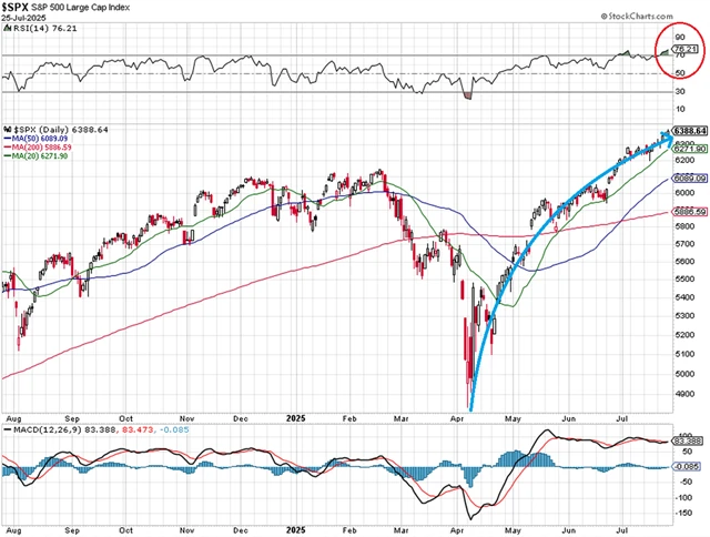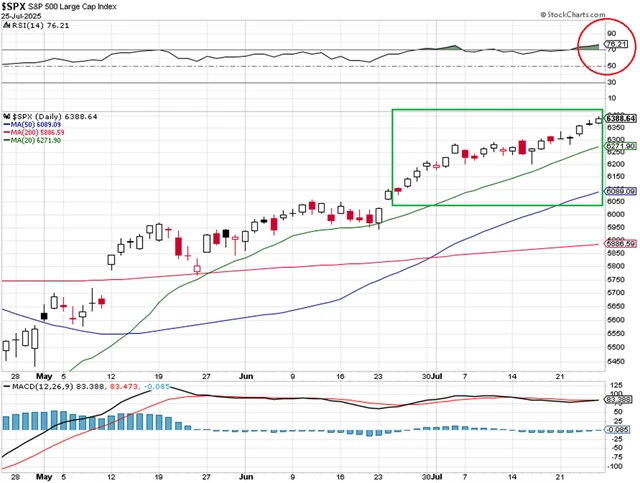 Americký akciový index S&P 500 do týdne vstupuje na historickém maximu a v překoupeném režimu (RSI nad 70).