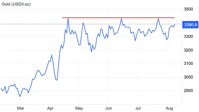 Dolarová cena zlata konsoliduje pod svým historickým maximem, akcie producentů zlata ale pokračují v prudké rally. V předchozích letech přitom právě tituly z tohoto odvětví zaostávaly jak za vývojem ceny samotného kovu, tak za širokým akciovým indexem.