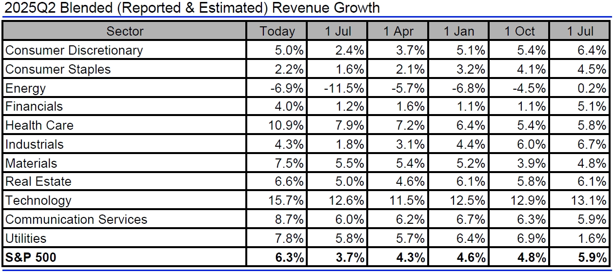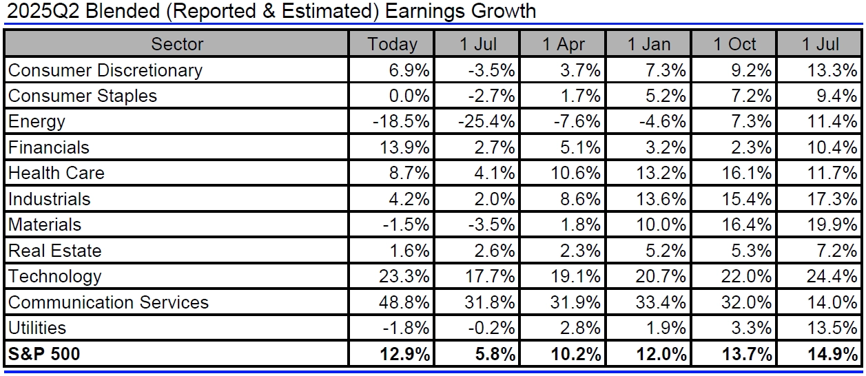 Jak se mění odhady vývoje zisků a tržeb amerických firem za 2Q2025?