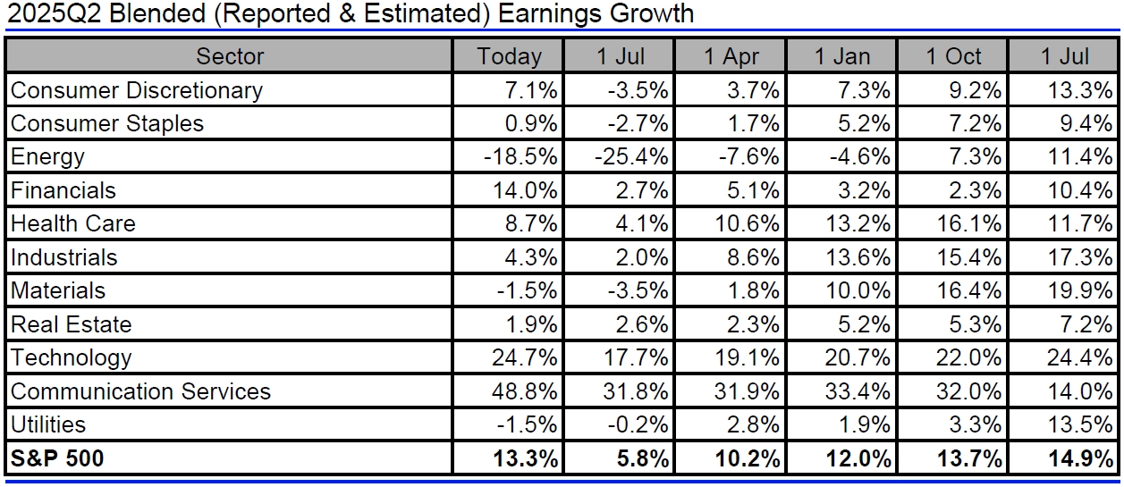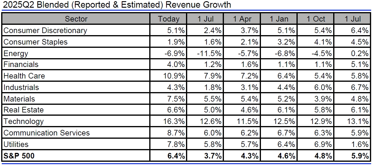 Jak se měnily odhady vývoje zisků a tržeb amerických firem za 2Q2025?