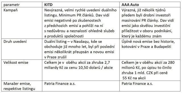 Nejdříve začnu stručným srovnáním emise AAA Auto a duálního listingu KIT Digital.