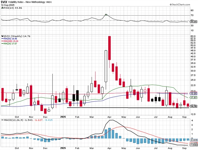 Index volatility VIX výrazněji nekolísá a drží se na úrovni letošních minim. Pro akcie je jeho nízká hladina obecně pozitivním znamením. Výrazně níže ale nejspíše klesat nebude, a tak není složité si představit, že i menší negativní impulz může trh relativně hodně rozkolísat.