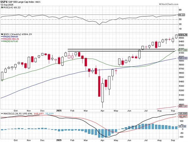 Po razantním vzestupu nad 6 500 se právě tato hladina stala nejbližším supportem. Další je v pásmu 6 340 až 6 360 a ta nejdůležitější je v pásmu 6 150 až 6 200, které je vymezeno únorovými maximy a červencovými minimy. V první polovině týdne byly mírné růsty taženy menšinou titulů, silný čtvrteční vzestup ale proběhl za "účasti" výrazné většiny akcií.