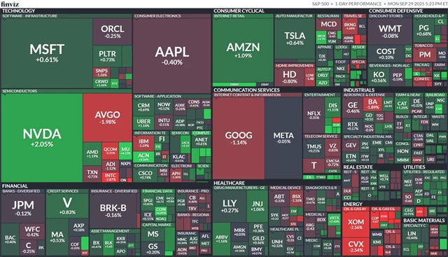Americké akciové indexy v pondělí posílily, a částečně tak smazaly ztráty z minulého týdne, kdy mírně ochladl zájem o umělou inteligenci. Viceprezident Vance uvedl, že vláda míří k shutdownu, kvůli kterému by teoreticky mimo jiné nemusela v pátek vyjít zpráva o vývoji na trhu práce za září. Náladu na trhu podpořila velká akvizice společnosti Electronic Arts.
