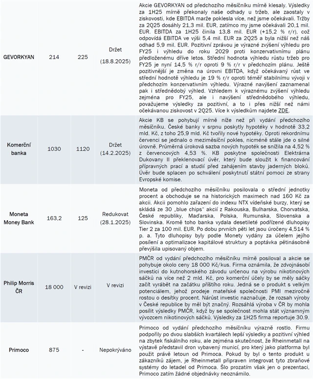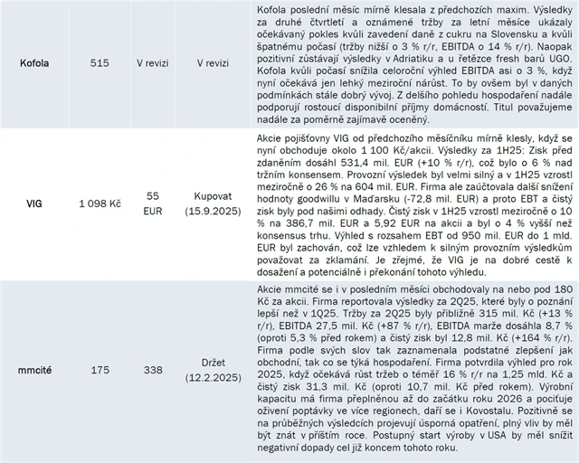 A teď už tradiční přehled jednotlivých námi sledovaných titulů na burze v Rybné.