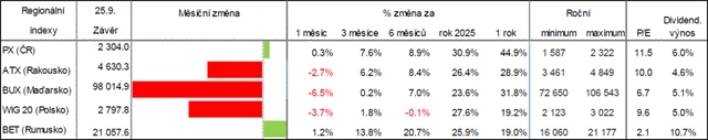 Jak vnímáme domácí akciový trh na konci září? Index PX na rozdíl od regionální konkurence zůstává na růstové trajektorii.