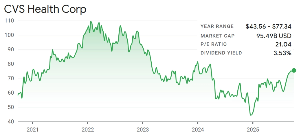 Retailová lékárenská síť CVS Health oznámila čtvrtletní dividendu 0,665 USD na akcii splatnou letos 3. listopadu. V přepočtu na roční bázi jde o 2,66 USD na akcii, což odpovídá dividendovému výnosu 3,53 %. Po nedávných rozhovorech s generálním ředitelem Davidem Joynerem a finančním ředitelem Brianem Newmanem zopakovala analytička z Morgan Stanley Erin Wrightová doporučení "koupit" s cílovou cenou 82 USD. Její optimismus vychází hlavně z integrovaného modelu CVS, tedy propojení lékáren, zdravotní pojišťovny a služeb pro nastavení cen léků. Podle ní právě to zvyšuje hodnotu firmy a zvyšuje to její šance na úspěch.