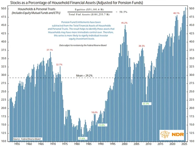 Podle dat Fedu americké domácnosti i institucionální investoři drží rekordní podíl svých aktiv v akciích. To svědčí o vysoké expozici, která se už jen těžko bude výrazněji zvyšovat, zároveň to ale svědčí o důvěře ve střednědobý a dlouhodobý růst americké ekonomiky. To všechno v době, kdy jsou valuace amerických akcií historicky mimořádně vysoké, podle některých indikátorů dokonce nejvyšší v historii. "Ocenění ale není nástroj vhodný k časování trhu. Trh často pokračuje v růstu, i když jsou valuace vysoké a trh překoupený. Když jsou solidní fundamenty, investoři nepanikaří," připomíná Millard.