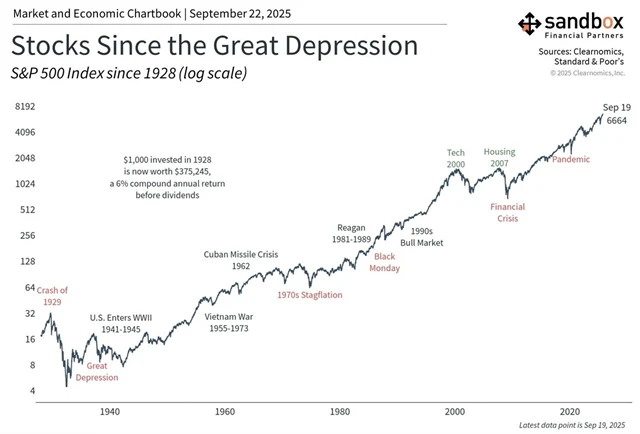 Zdroj: Sandbox Financial Partners, Clearnomics, Piper Sandler, Fed, Ned Davis Research, A Wealth of Common Sense, FactSet