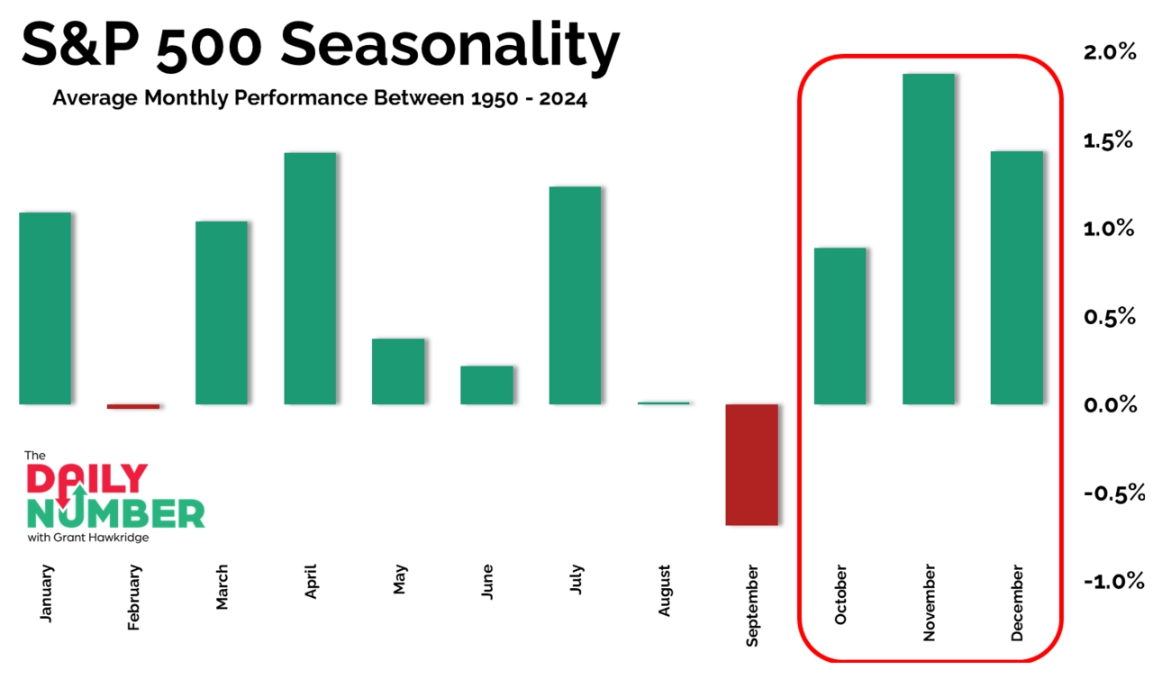 Během dvou týdnů se na Wall Street rozběhne výsledková sezóna za třetí letošní kvartál. Analytici během něj netypicky zvyšovali odhady ziskovosti firem z indexu S&P 500. Právě období zveřejňování finančních ukazatelů společností historicky přispívá k tomu, že během října a zejména listopadu americký akciový trh typicky roste. Sezónní vzorce letos sice nefungují, právě silný závěr roku je ale z nich statisticky jeden z těch nejspolehlivějších. Uvidíme.