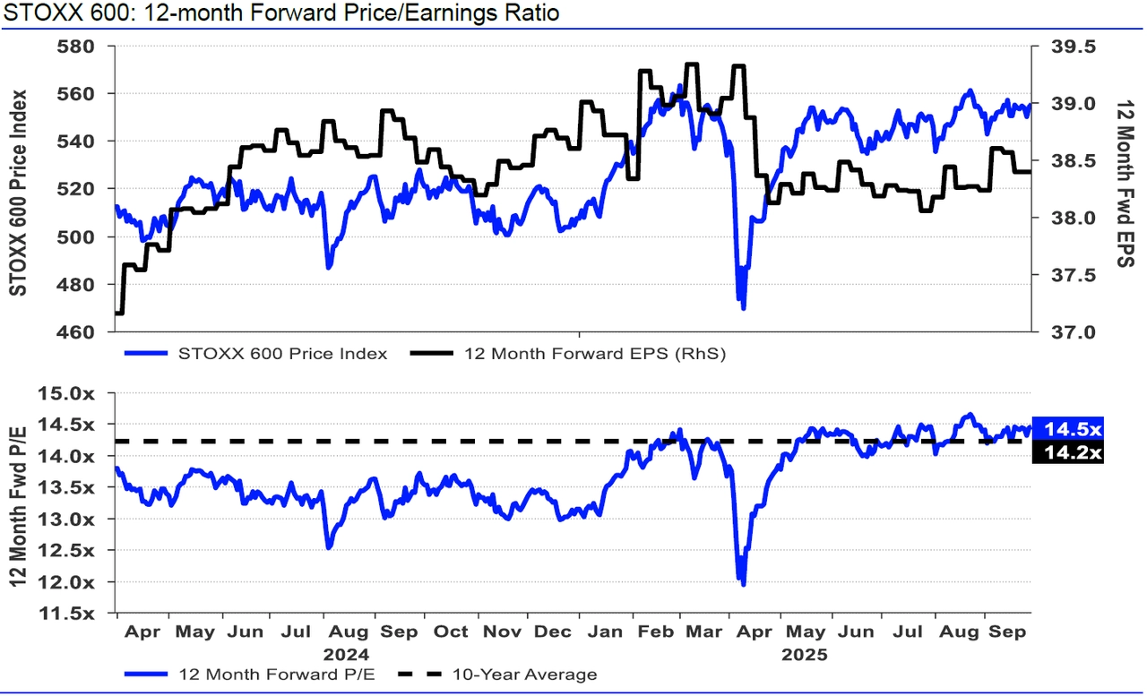 Jak je aktuálně oceněn index STOXX Europe 600?