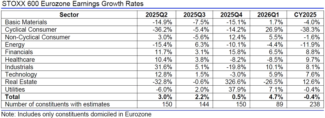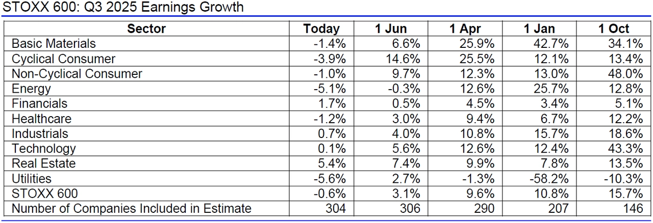 Jak se mění odhady vývoje zisků evropských firem za 3Q2025?