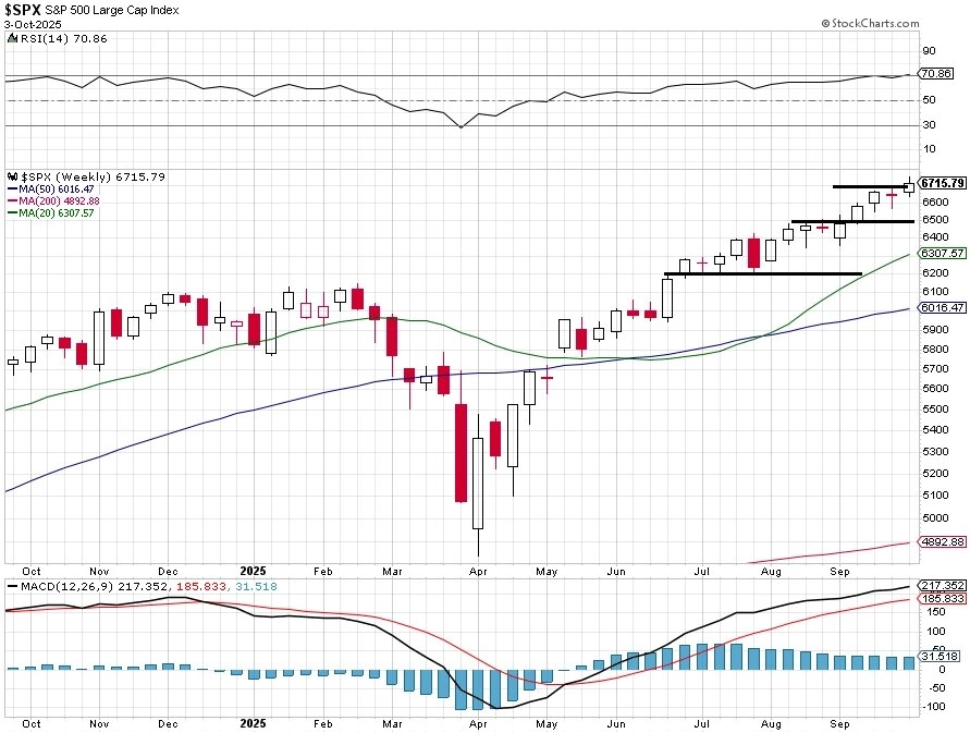 "Od středy je ve Spojených státech vládní shutdown, na akciový trh to ale zatím nemá výraznější vliv, protože obchodníci sázejí na to, že výpadek financování vládních úřadů a agentur nebude trvat dlouho. Akciový index S&P 500 několikrát posunul historické maximum a za týden vzrostl o 1,09 %. Jeho graf je v býčím nastavení a růstovém trendu. V týdnu poprvé prorazil nad 6 700 a nad touto kulatou hladinou také uzavřel. Nejbližší support je na 6 560, důležitá podpora je ale až okolo 6 500. Jde o někdejší rezistenci, kterou index několikrát testoval a po její změně na support proběhlo to samé v opačném směru. Další podpora je až na 6 200," napsal v pravidelném technickém komentáři k dění na americkém akciovém trhu opční obchodník Josef Košťál.